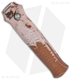 Piranha’s Amazon is another awesome automatic knife with hard-hitting action, so you’ll need to hold on tight! The 6061-T6 aluminum handles have grip grooves and a steel pocket clip. The 154-CM stainless steel blade has a great profile and masterfully integrated holes below the spine.