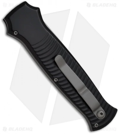 The Piranha Bodyguard is a contemporary spin on the classic stiletto style. These automatic knives fire hard and fast with the push of the button. The Bodyguard has an anodized 6061-T6 aluminum handle with the firing button on front and a titanium clip on back for tip-up carry. The blade is premium CPM-S30V stainless steel.