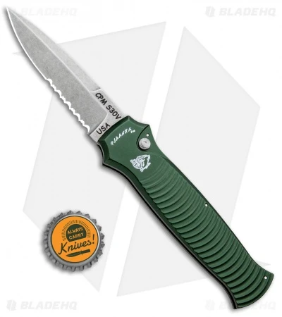 The Piranha Bodyguard is a contemporary spin on the classic stiletto style. These automatic knives fire hard and fast with the push of the button. The Bodyguard has an anodized 6061-T6 aluminum handle with the firing button on front and a titanium clip on back for tip-up carry. The blade is premium CPM-S30V stainless steel.