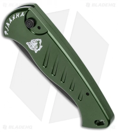 The Piranha Fingerling is a functional and stylish automatic knife. The action is fast and lockup is solid, so hang on tight! The lightweight and sturdy 6061-T6 aluminum handles feature recessed grooves for added gripping power. The knife is very thin, which makes it quite comfortable to carry with the tip-up titanium pocket clip.