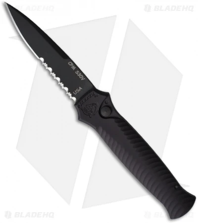 The Piranha Mini-Guard is part of the Bodyguard knife series. These knives put a contemporary spin on classic stiletto styling and fire hard and fast. The Mini-Guard has an anodized 6061-T6 aluminum handle with the firing button on front and a titanium clip on back for tip-up carry. The blade is premium CPM-S30V stainless steel.