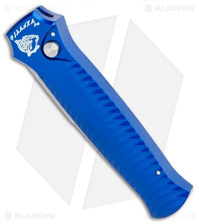 The Piranha Mini-Guard is part of the Bodyguard knife series. These knives put a contemporary spin on classic stiletto styling and fire hard and fast. The Mini-Guard has an anodized 6061-T6 aluminum handle with the firing button on front and a titanium clip on back for tip-up carry. The blade is premium CPM-S30V stainless steel.