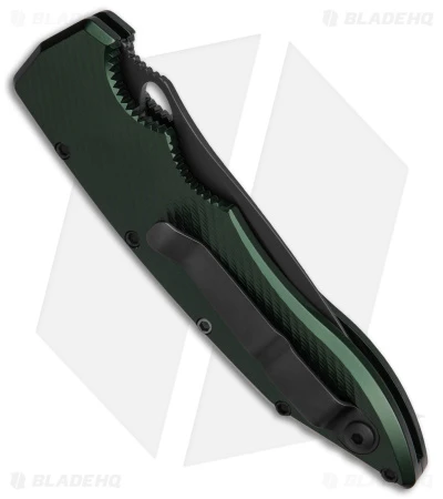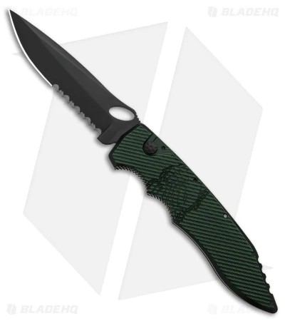 - Black, serrated drop point blade made from CPM S30V stainless steel.
