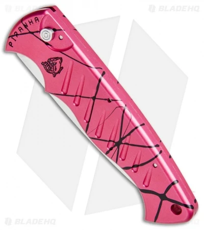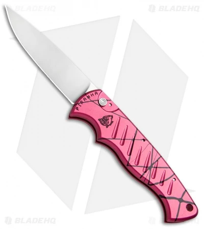 The Piranha P-1 Pocket series is functional and stylish with a good feel. The 154-CM blade is drop-point styled. It opens with a commanding kick and locks solidly into place. The lightweight 6061-T6 aluminum handle is hard anodized and features recessed grooves for added gripping power. Also, the knife is very thin which makes it quite comfortable for pocket carry with the titanium clip.
