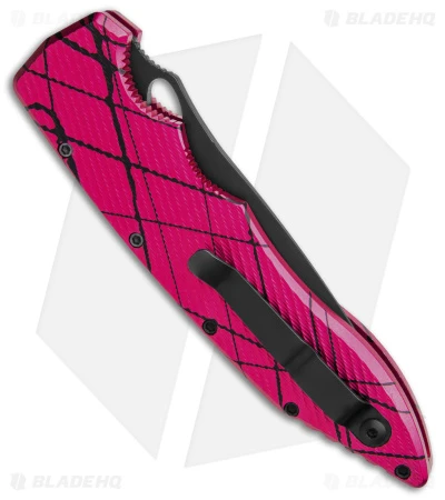 - Textured pink aluminum handle.