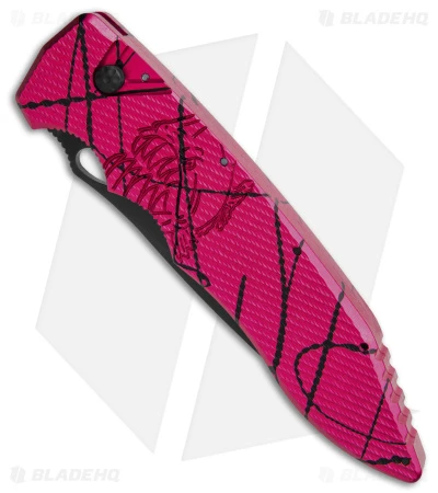 The Piranha Predator is the latest automatic knife offering from Piranha. It features a machine textured aluminum handle with a tip-up carry titanium pocket clip. The Predator has push button action that is strong and reliable. The blade is CPM-S30V stainless steel with a mean profile for combat duty.