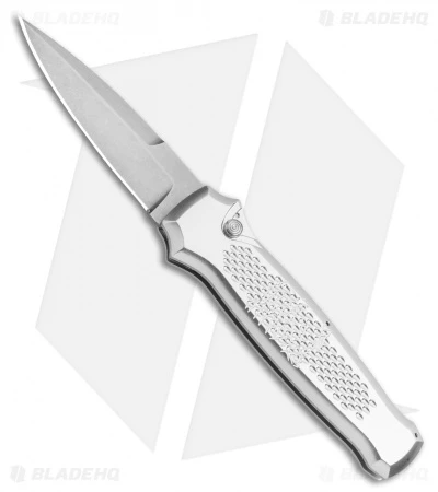 The Prowler is an Italian stiletto–inspired knife from Piranha. Its symmetric design is impressive from the handle to the perfectly aligned, single-edged dagger blade. This USA-made automatic knife delivers Piranha’s consistent and powerful coil-spring action. A push of the firing button unlocks the Prowler’s potential and locks the blade confidently with the plunge lock. The hard-coat anodized 6061-T6 aluminum handle features a teardrop dimple texture along with Piranha’s logo. The back side has a machined recess to flush mount the titanium tip-up carry pocket clip.